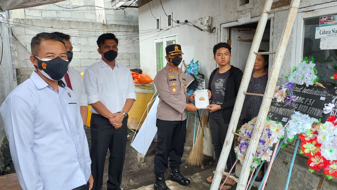 Pada kesempatan tersebut, Kapolres langsung menyerahkan Sembako dan tali asih untuk membantu keluarga Korban.