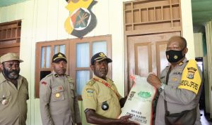 Dalam kunjungannya juga Kapolres Paniai beserta Kabag Ops dan juga Kasat Binmas Polres Paniai menyerahkan sembako berupa beras sebanyak 5 Kilo gram kepada Kepala Kampung dan juga Kepala suku serta beberapa masyarkat kampung toyebuti