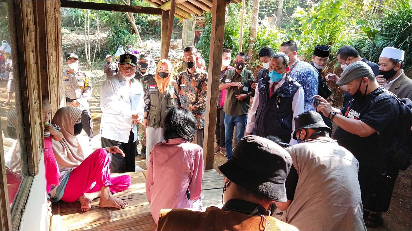 MediaSuaraMabes, Sukabumi -Wakil Gubernur Jawa Barat Mengunjungi Warga kampung Nyalindung RT 05 RW 01 Desa Cihaur Kecamatan Simpenan Kabupaten Sukabumi Ibu Eha 68 Tahun yang Jompo dan juga lumpuh sejak 2 tahun dan anaknya Imas 30 tahun yang juga mengalami kelumpuhan sejak 30 tahun silam, Kamis 26/08/2021.