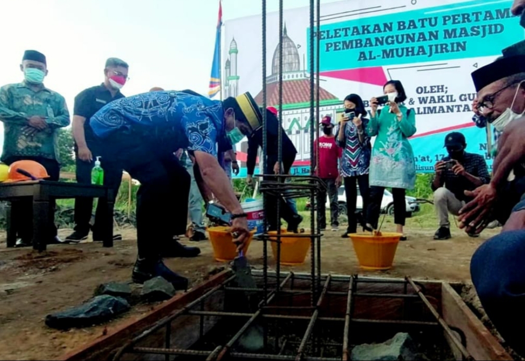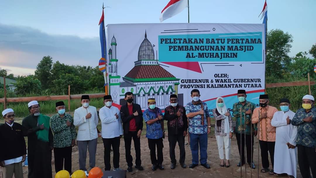 Dalam kunjungannya, Gubernur didampingi Wakil Gubernur, Yansen. TP dan Bupati Nunukan Hj.Asmin Laura Hafid, melakukan peletakan batu pertama pembangunan Masjid Al-Muhajirin di kampung Sungai Sembilang, Kelurahan Selisun, Kecamatan Nunukan Selatan.