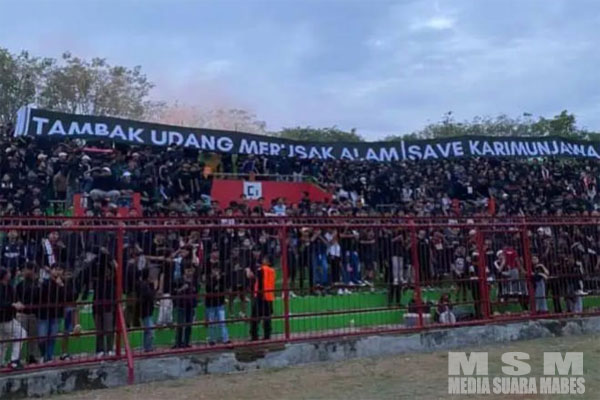 Laga Persijap Jepara Vs Persipa Pati Terbentang Spanduk Bertuliskan ” Tambak Udang Merusak Alam, Save Karimunjawa