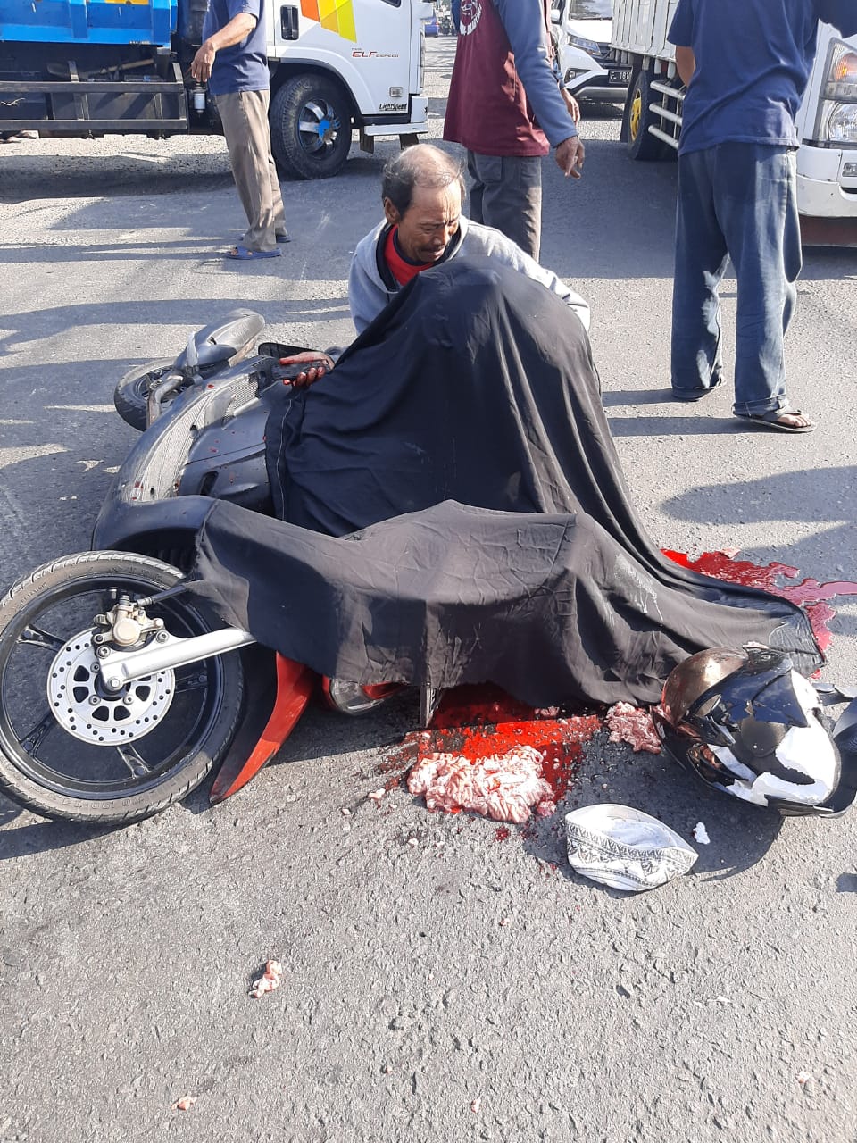 “Saya melihat motor berusaha nyalip kontainer namun tersenggol hingga terjatuh dan terlindas ban belakang sebelah kanan,” ujar Yono.
