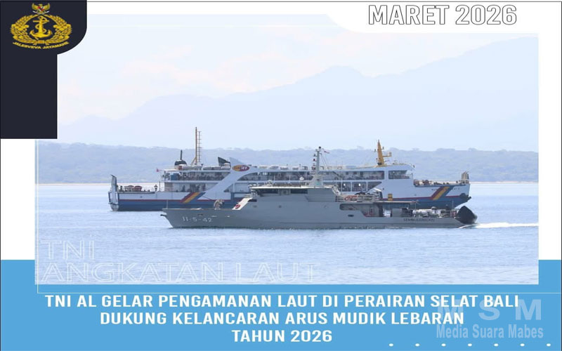 MediaSuaraMabes, Jakarta – Dalam rangka memastikan keamanan dan kelancaran arus mudik Hari Raya Idul Fitri 1447 H/2026, Pangkalan TNI Angkatan Laut (Lanal) Banyuwangi melaksanakan pengamanan laut di perairan Selat Bali. Kegiatan ini difokuskan pada jalur penyeberangan yang menjadi titik utama mobilitas masyarakat menjelang Lebaran. Selasa (17/3).