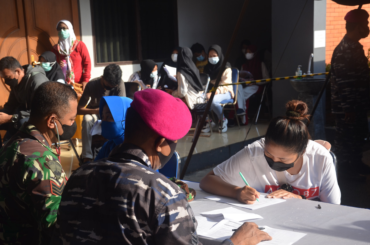 Komandan Pangkalan Marinir Jakarta Kolonel Marinir Arief R. H. Anggorojati, S.E., M.M, CTMP. Selaku ketua panitia serbuan vaksinasi yang berada di Balai Prajurit Marinir Cilandak Jakarta Selatan, menyiapkan Sarana dan prasarana, serta pelayanan kegiatan serbuan vaksinasi covid-19 untuk para Prajurit TNI beserta keluarga dan masyarakat umum.