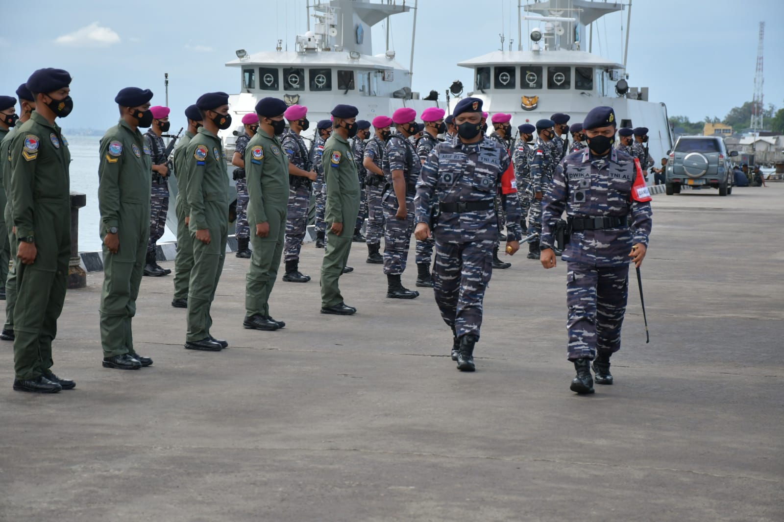 Komandan Lantamal IV Tanjungpinang Laksamana Pertama TNI Dwika Tjahja Setiawan, S.H., M.H., M.Tr. Opsla bertindak selaku Penerima Apel dan Komandan Satrol Lantamal IV Kolonel Laut (P) Arif Prasetyo Irbiyanto, S.E. selaku Pengambil Apel, diikuti Satu Peleton Pamen dan Staf Lantamal IV, Dua Peleton Personel KRI, Dua Peleton Personel KAL, Satu Peleton Wing Udara I/ Lanudal dan Satu Peleton Personel Yonmarhanlan.
