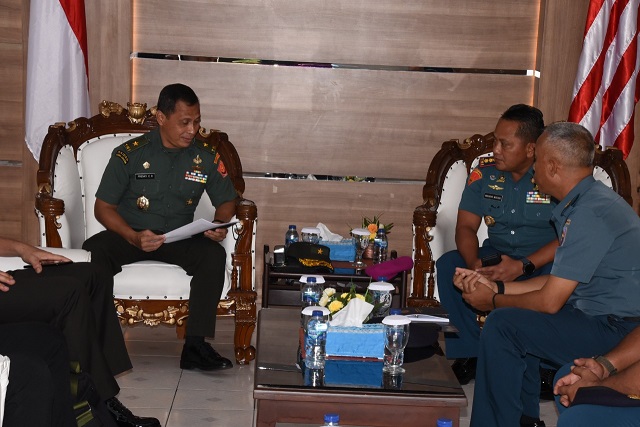Tim Kemenkopulhukan RI yang terdiri dari Asisten Deputi Koordinasi Doktrin dan Strategi Pertahanan Brigjen TNI Frengky E. Riupassa didampingi Kepala Bidang Doktrin Pertahanan Kolonel Inf Rusman dan Analis Polhukam Domaeld Putra diterima Wakil Komandan Lantamal VIII Kolonel Marinir Mikaryo Widodo mewakili Komandan Lantamal VIII Laksamana Pertama TNI Nouldy J. Tangka.