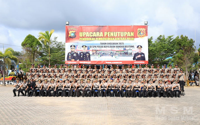 MediaSuaraMabes, Babel – Kapolda Bangka Belitung Irjen Pol Viktor T. Sihombing resmi menutup Pendidikan Pembentukan Bintara (Diktukba) Polri Tahun Anggaran 2025, Rabu (24/12/2025) pagi.