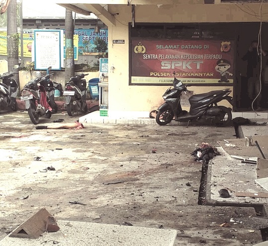 “Ledakan terjadi sekira pukul 08.20 WIB, dan diduga berasal dari sebuah bom bunuh diri”.