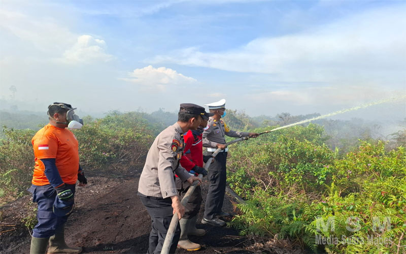 MediaSuaraMabes, Ketapang – Polda Kalbar, Jajaran Polres Ketapang kembali melaksanakan kegiatan pemantauan serta pemadaman titik api di wilayah Desa Sungai Besar Kecamatan Matan Hilir Selatan Kabupaten Ketapang, Pada Sabtu pagi (02/08/2025). Dalam kegiatan pemantauan dan pemadaman titik api kali ini, Polres Ketapang menggandeng personil Kodim 1203 Ketapang, Manggala Agni, BPBD, warga Desa Peduli Api serta tim the power of emak emak Desa Sungai Besar.