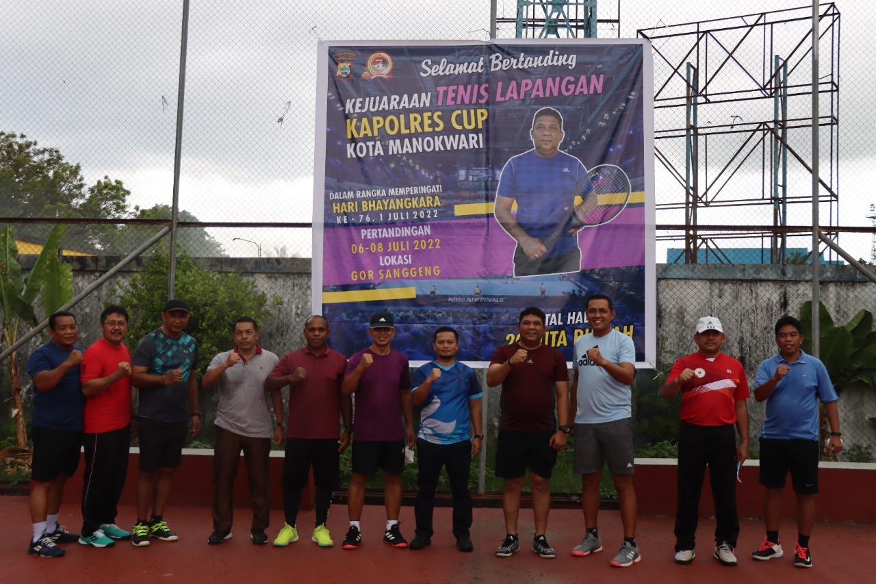 MediaSuaraMabes, Manokwari – Perlombaan Tenis Lapangan Kapolres Cup dalam rangka peringatan hari Bhayangkara ke-76 diikuti oleh 6(enam) Club, bertempat di lapangan Gor Sanggeng Kabupaten Manokwari. Rabu 06/07/2022.