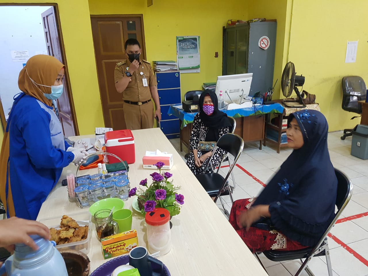 MediaSuaraMabes, BANJARMASIN — Menindak lanjuti surat edaran Walikota Banjarmasin Nomor : 440/01-P2P/DISKES tentang percepatan capaian vaksinasi umum dan lansia Kota Banjarmasin. Lurah Kelayan Barat Muhammad Farid Rivani, S.IP bersama tim vaksinator Puskesmas Pekauman bergerak melaksanakan vaksinasi lansia di kantor Kelurahan Kelayan Barat.