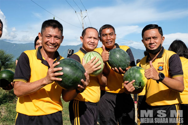 Jumat sehat setelah melaksanakan olah raga pagi, jalan santai dan senam aerobic, Polda Sulteng melakukan panen buah semangka yang ditanam disebelah selatan tempat ibadah yang ada di Polda Sulteng itu.