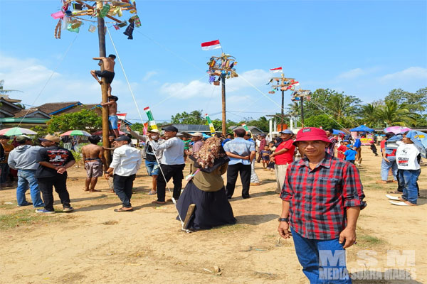 “Panjat pinang ini juga mengandung nilai-nilai kerja keras, gotong royong, dan yang paling utama adalah kesabaran untuk bisa naik di ujung pohon pinang tersebut,” harapnya.(Hijrah).