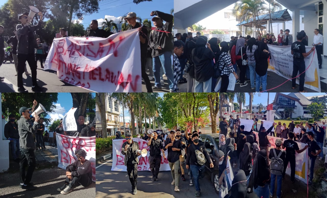 MediaSuaraMabes, Bitung – Sejumlah elemen mahasiswa dan organisasi masyarakat yang mengatasnamakan Aliansi Barisan Bitung Melawan (BBM), melakukan aksi demonstrasi penolakan kenaikan harga BBM di depan kantor DPR Kota Bitung Sulawesi Utara. Jumat (09/09/2022).