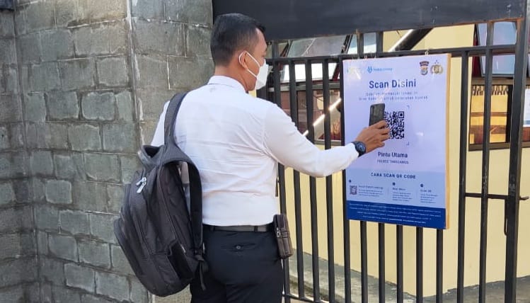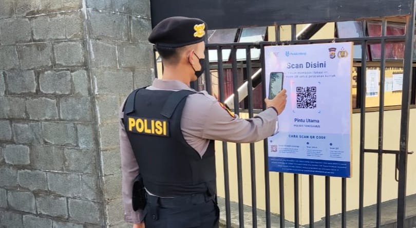 MediaSuaraMabes, Tanggamus – Sebagai upaya melakukan pencegahan dan antisipasi penyebaran Covid-19, Polres Tanggamus mewajibkan seluruh personel dan masyarakat yang memasuki Mapolres untuk melakukan registrasi melalui scan QR Code aplikasi pedulilindungi.