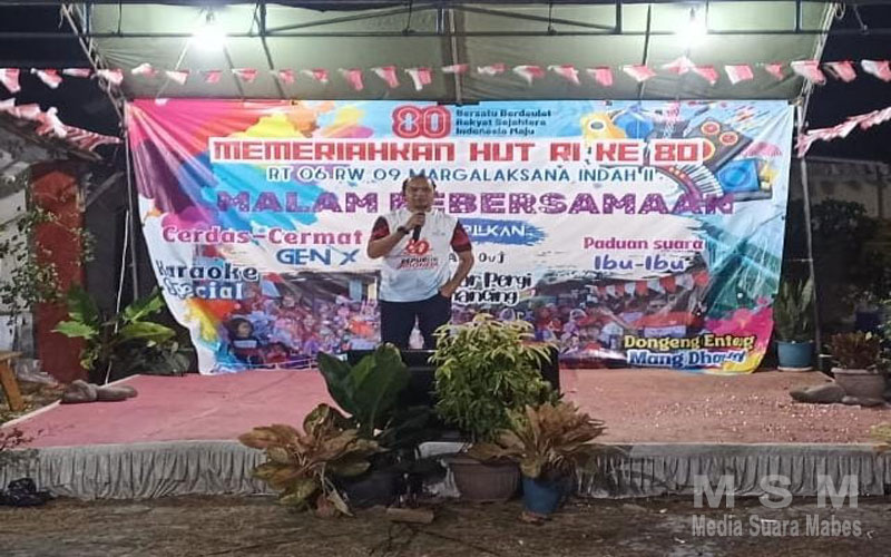 Sambungnya Dengan mengisi kemerdekaan ke 80, 17 Agustus tahun 2025,kami mengajak masyarakat untuk mengikuti pelbagai macam perlombaan diantaranya : Cerdas Cermat, Paduan Suara, Jalan Santai, Tarik Tambang, Bola volly, catur, balap karung, makan krupuk, pukul kendi, jalan lumpur pakai sepatu bak kiak beregu,dsb nya Hal tersebut menarik kalangan masyarakat dari usia Dini, hingga dewasa yang mengikuti Lomba kebersamaannya tetap berjalan Harmonis sesuai jenis yang dilombakannya tandas Rio somantri SH.S.IP. M.S.i ke mediasuaramabes.