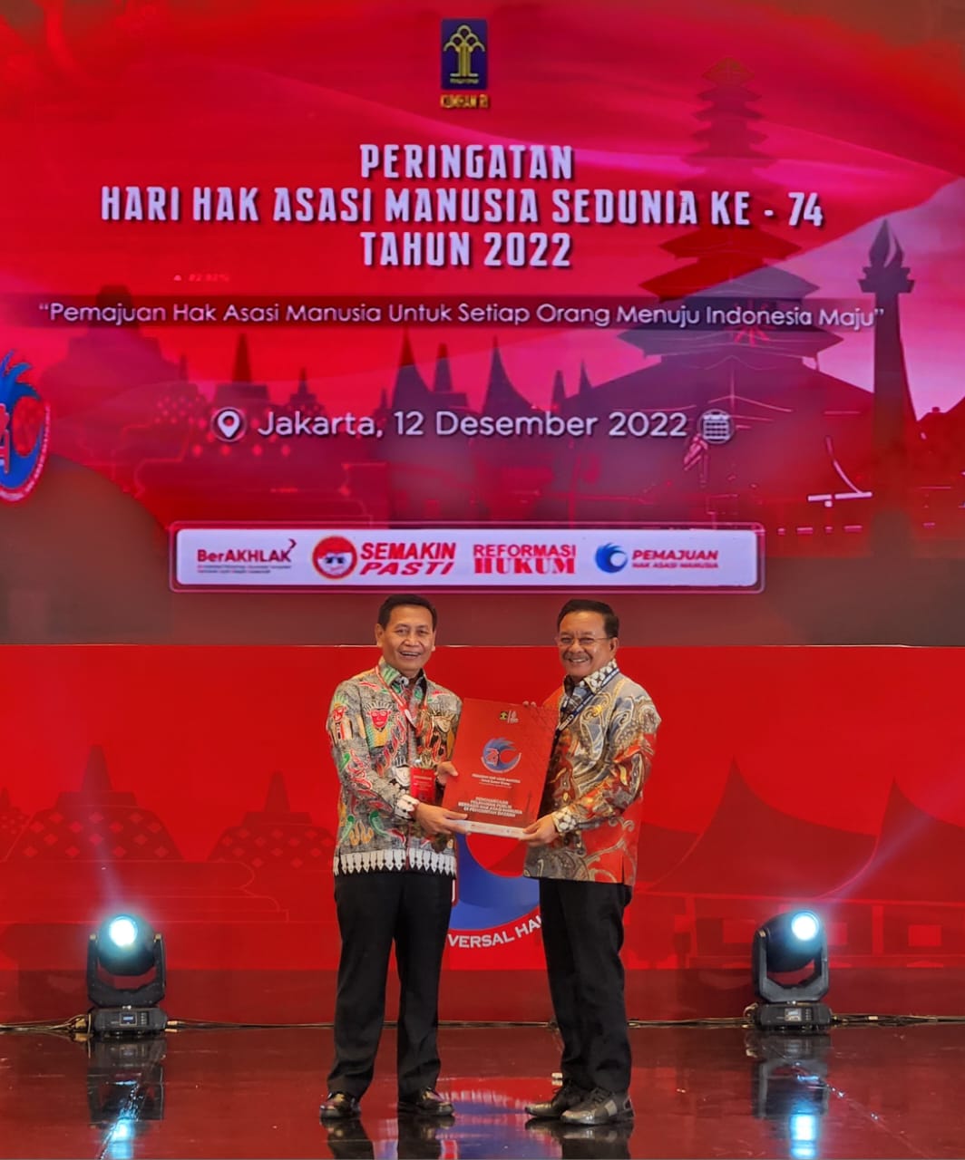 Dengan ini, di Pemerintah Daerah dari Kementerian Hukum dan Hak Asasi Manusia dalam Peringatan Hari Hak Asasi Manusia Sedunia ke-74 Tahun 2022 yang mengambil tema “Pemajuan Hak Asasi Manusia Untuk setiap Orang Menuju Indonesia Maju.