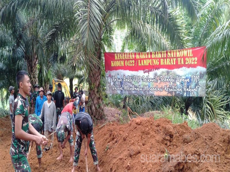 MediaSuaraMabes, Ngaras – Kodim 0422/LB melaksanakan Karya Bhakti Satkowil Semester I TA. 2022 di Pekon Sukamaju Kec. Ngaras Kab. Pesisir Barat dengan membangun fasilitas umum berupa lapangan volly ball (bola voli), Senin(13/06/2022).