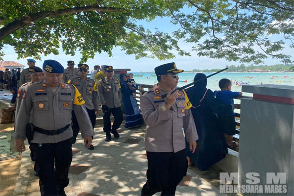 MediaSuaraMabes, Jepara – Kapolres Jepara AKBP Warsono, SH., SIK., MH, didampingi pejabat utama Polres Jepara memonitor langsung situasi di tempat-tempat wisata yang ada di Kabupaten Jepara, Salah satunya Pantai Bandengan Jepara dengan patroli jalan kaki. Minggu (23/04/2023).