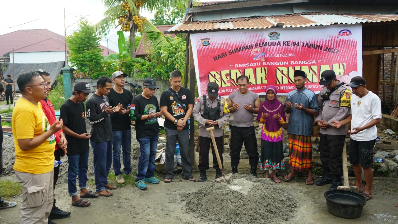 MediaSuaraMabes, Palu – Dalam rangka memperingati hari Sumpah Pemuda ke-94 tahun 2022, Polda Sulteng bersama komunitas vespa kota Palu melaksanakan kegiatan sosial dengan membangun rumah seorang janda yang berada di desa Kalukubula Biromaru Kabupaten Sigi (28/10/2022)