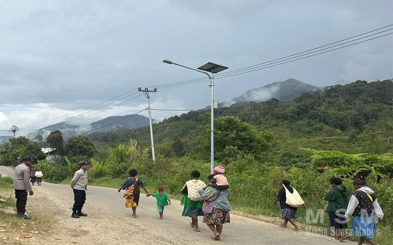 MediaSuaraMabes, Bomomani – Berikan rasa aman dan nyaman kepada masyarakat, Personil Polsek Mapia Polres Dogiyai Yang dipimpin Oleh Kanit Samapta Polsek Mapia Aipda Ikram Ismail laksanakan patroli jalan kaki dan sambang dialogis Saat Ibadah Idul Adha 1445 H di Kampung Bomomani Distrik Mapia”17/06/2024