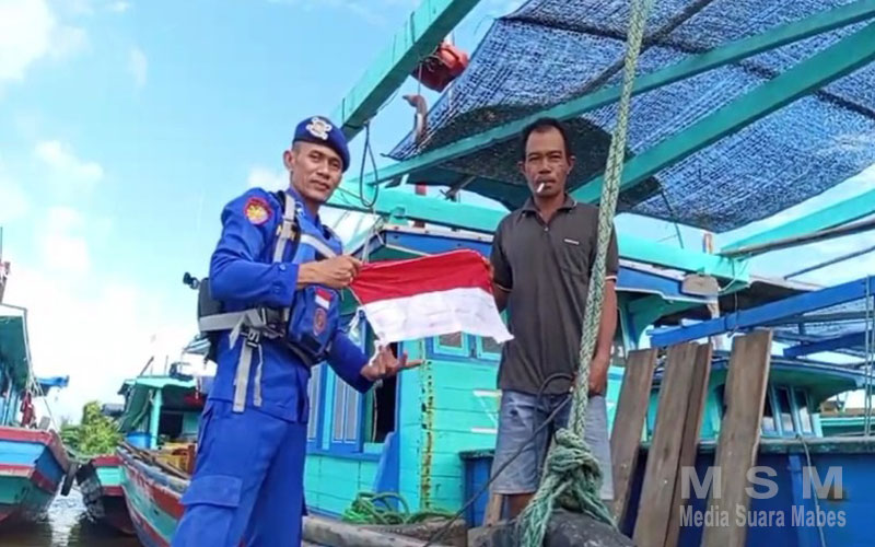 MediaSuaraMabes, Ketapang Kalbar – Menyambut Hari Ulang Tahun Kemerdekaan Republik Indonesia ke-80 tahun 2025, Satuan Polisi Air dan Udara (Satpol Airud) Polres Ketapang melaksanakan kegiatan pembagian bendera Merah Putih kepada warga pesisir, Jumat (15/08/2025).