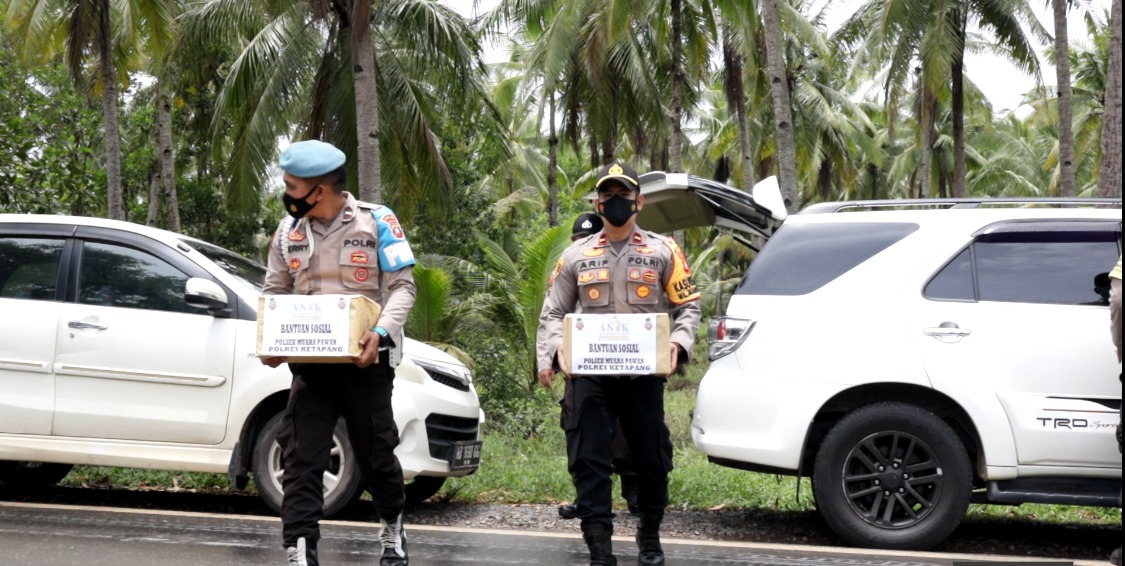 MediaSuaraMabes, Ketapang – Puluhan warga, pedagang dan sopir truk angkutan barang di Kecamatan Muara Pawan Kabupaten Ketapang Kalimantan Barat yang terdampak kenaikan Bahan Bakar Minyak (BBM) mendapatkan bantuan sosial (Bansos) berupa sembako dari Polsek Muara Pawan Polres Ketapang. Bantuan paket sembako tersebut diserahkan langsung Kapolres Ketapang AKBP Yani Permana, S.I.K., M.H., melalui Kapolsek Muara Pawan IPDA Arifianto Hamzah, S.H., M.H., pada Rabu 14 September 2022, Pukul 09.00 wib.