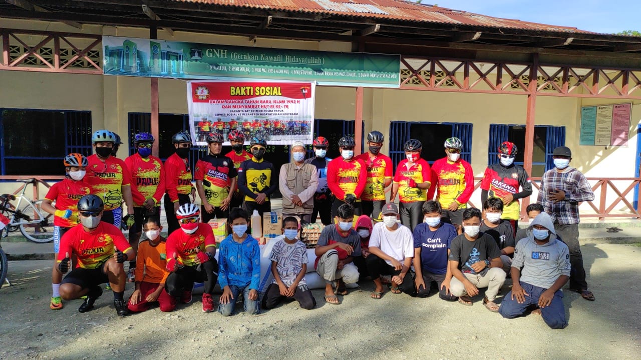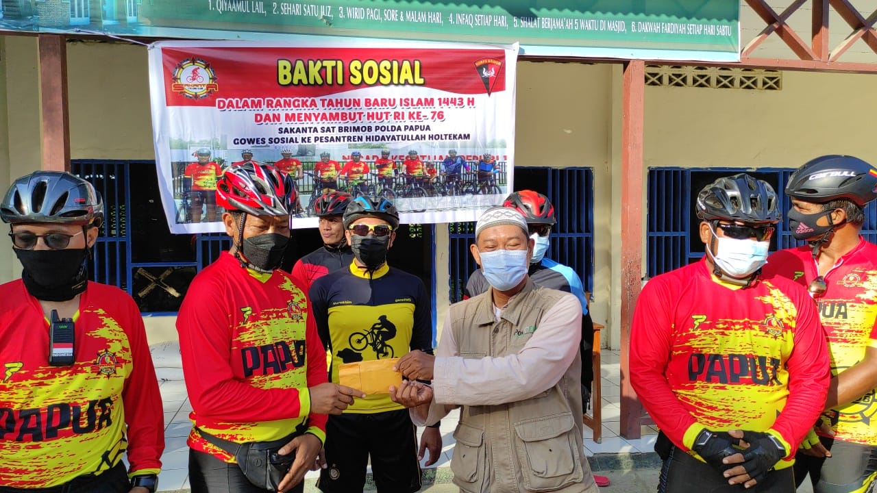 SuaraMabes, Jayapura – Pada hari Minggu tanggal 15 Agustus 2021 meriahkan HUT RI yang ke-76 Tahun, Sakanta Cycling Club bersama Keluarga Besar Brimob melaksanakan Bhakti Sosial di Pondok Pesantren Hidayatullah Hollte Camp Distrik Muara Tami Kota Jayapura.