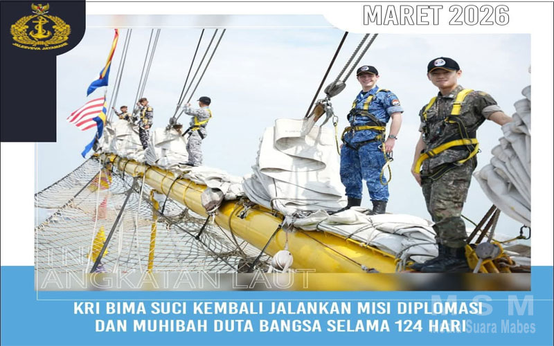 MediaSuaraMabes, Surabaya – KRI Bima Suci dengan komandan Letkol Laut (P) Sugeng Hariyanto, S.E, M. Tr.Opsla , sebagai Komandan Satuan Tugas (Dansatgas) Muhibah Diplomasi Duta Bangsa dan Latek Kartika Jala Krida (KJK) 2026, kembali berlayar untuk melaksanakan misi diplomasi dan muhibah duta bangsa selama 124 hari mulai dari tanggal 26 Maret s.d. 28 Juli 2026, dalam rangka mendukung Latihan Praktek (Lattek) Pelayaran Kartika Jala Krida (KJK) Taruna Akademi Angkatan Laut (AAL) Angkatan ke-73 Tahun 2026 Kamis (26/3).