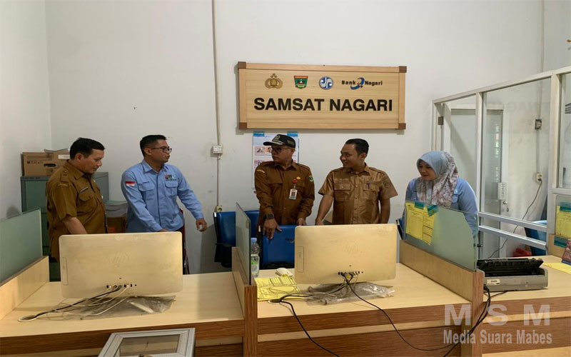 MediaSuaraMabes, Lubuk Sikaping – Kepala UPTD PPD ( Samsat ) Lubuk Sikaping, Nasripul Romika, S. Sos., MM didampingi Kepala Seksi Penagihan Penerimaan, Muhammad Rezi, A. Md, dan staf melakukan Evaluasi dan Monitoring pelayanan di Samsat Nagari yang berlokasi di Kantor Wali Nagari Bahagia Padang Gelugur Kecamatan Padang Gelugur, Selasa (7/04/2026).
