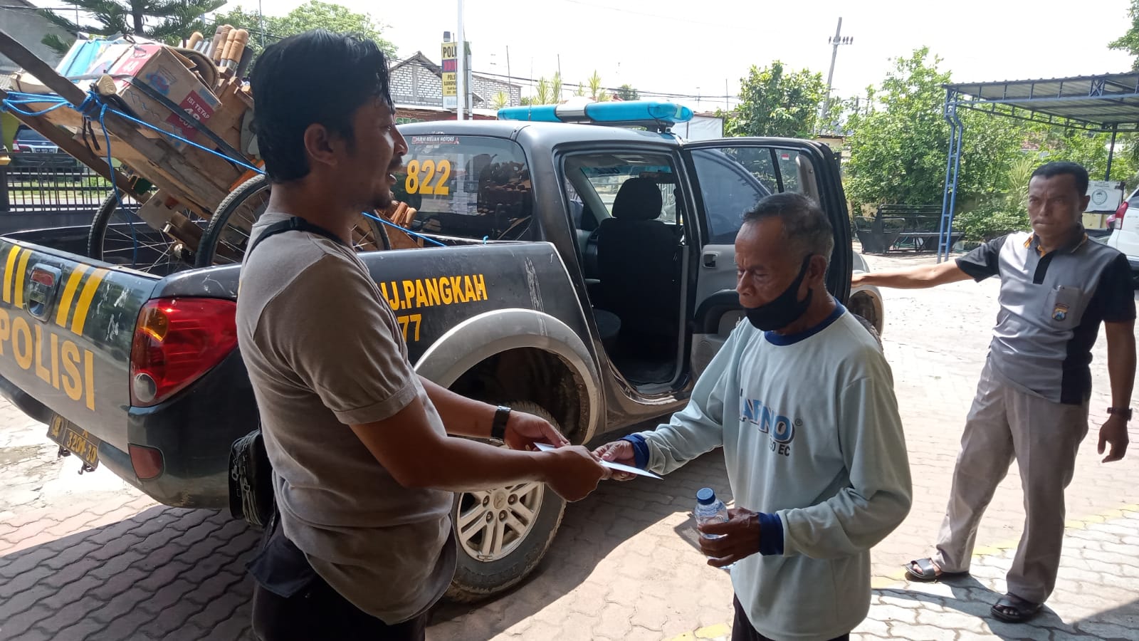 Sementara itu, Anggota Polsek Ujungpangkah Aipda Yones menceritakan kronologi membantu pedagang asongan yang sedang sakit Saat itu, dia sedang berjaga di Mapolsek.