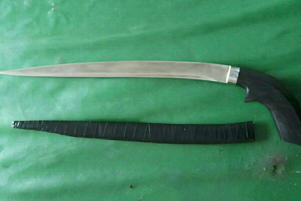 Tak pakai lama, pelaku pembawa sajam langsung diamankan dan dibawa ke Mako Polsek Aertembaga untuk dilakukan pemeriksaan.