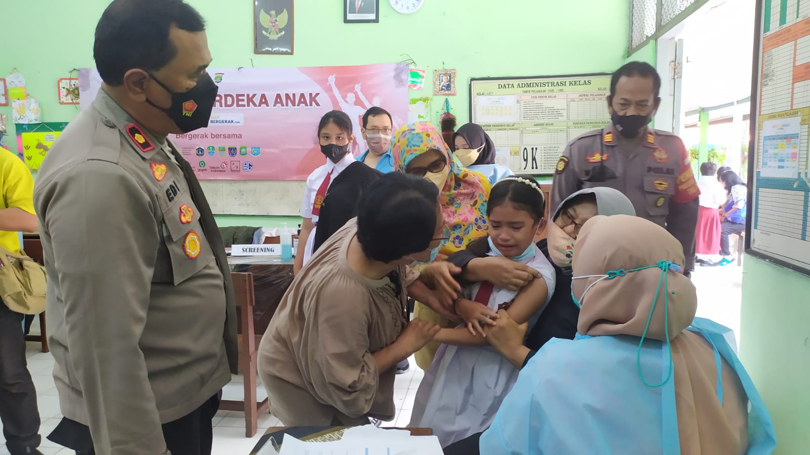 MediaSuaraMabes, Jakarta — Upaya Percepatan Vaksinasi Nasional Covid-19, sasaran Anak Usia 6 – 11 tahun, Dosis 2 jenis Vaksin Sinovac untuk pelajar SD di wilayah Polsek Johar Baru.