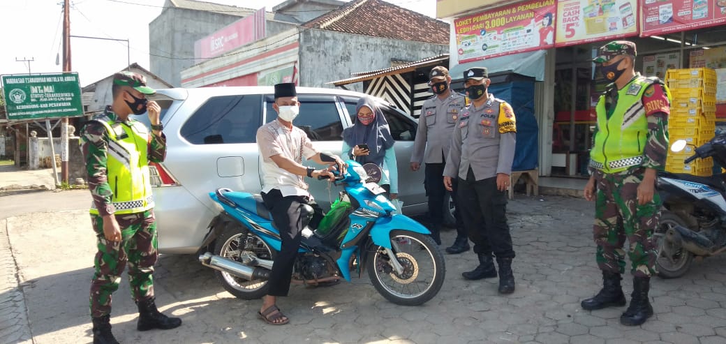 Kapolsek Kedondong, AKP Amin Rusbahadi mewakili Kapolres Pesawaran, AKBP Vero Arya Radmantyo menghimbau masyarakat yang berada ditempat keramaian mematuhi Protokol kesehatan ( prokes ).