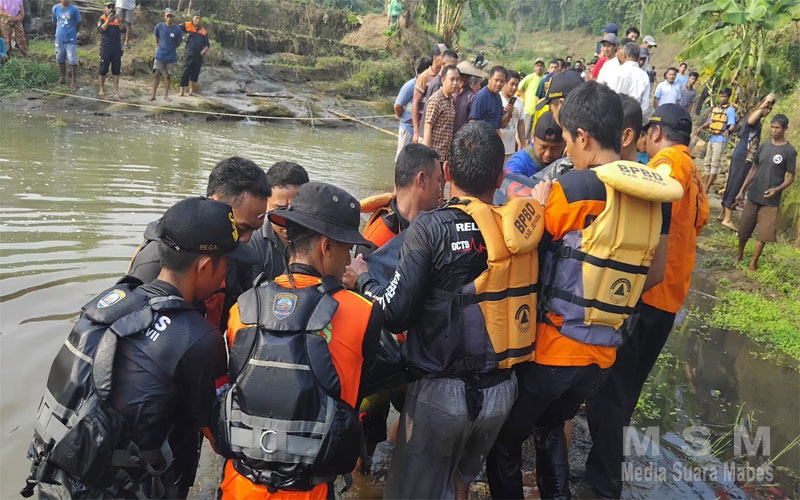3 orang temannya sempat kaget, akhirnya temannya lari ke perkampungan untuk meminta bantuan atas temannya yang tenggelam di sungai mencari ikan, dan pencarian di LKP dengan metode menjangkar, kedalaman 3m akses ke LKP sangat jauh dan tebing curam.