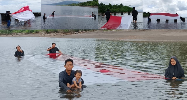 MediaSuaraMabes, Bitung – Organisasi Spizaetus melaksanakan kegiatan pembentangan bendera Merah Putih berukuran besar di atas permukaan air laut atau titik nol meter di atas permukaan laut (MDPL) pembentangan benderah itu sebagai bentuk memperingati hari Sumpah Pemuda ke-94 yang berlangsung di Pantai Doro, Watudambo, Kec. Kauditan, Kabupaten Minahasa Utara, Sulawesi Utara. Minggu, 30/10/2022