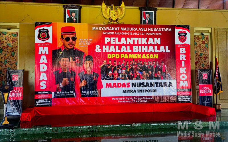Demikian disampaikan Ketua Umum Madas Nusantara, KRH.HM.Jusuf Rizal, SH dalam sambutannya pada pelantikan Abdus Somad Ketua dan pengurus DPD Madas Nusantara Pamekasan. Pada kesempatan tersebut dihadiri Bupati Pamekasan, KH.Kholilulrahman.