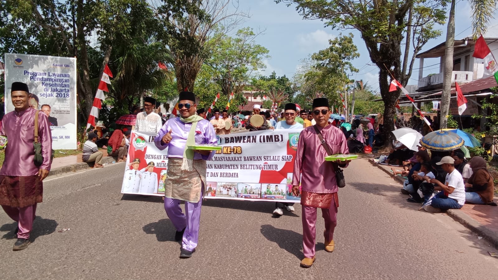 MediasuaraMabes, Beltim –Rangkaian peringatan Hari Ulang Tahun HUT RI ke-78 di Kabupaten Belitung Timur Paguyuban Bawean (lkatan Masyarakat Bawean) salah satu peserta ambil bagian untuk ikut serta meriahkan acara tersebut, Minggu (27/8/2023).
