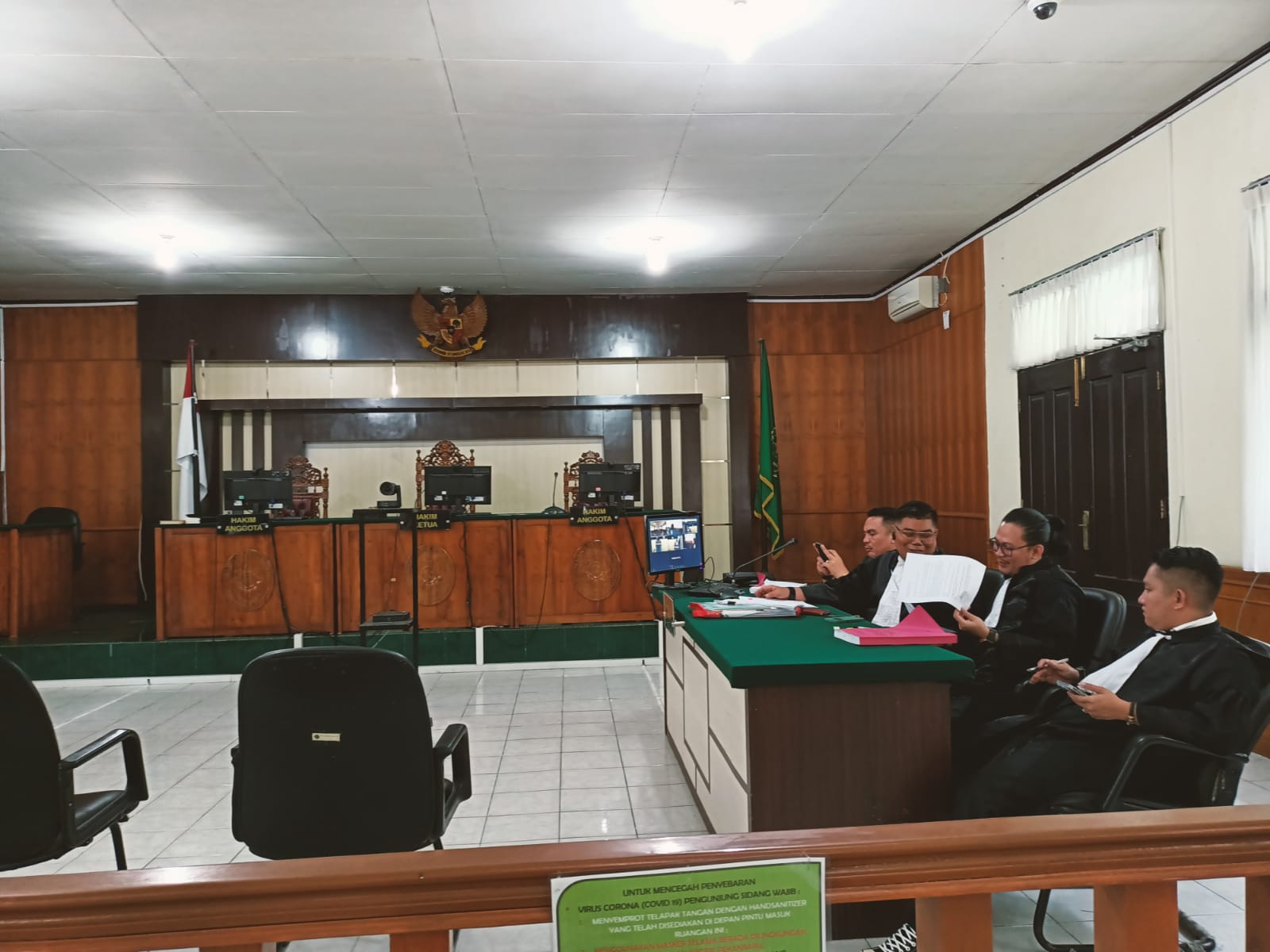Sidang digelar secara Online, saksi Ahli Pakar Hukum Pidana Prof DR Elwi Danil SH MH berada di ruang kerjanya secara Virtual, Penasehat Hukum terdakwa Emi Afrijon SH & Patners, JPU, dan Majelis Hakim berada di ruang Sidang PN jalan Teratai Pekanbaru, serta Terdakwa di Rutan Sialang Bungkuk Pekanbaru.