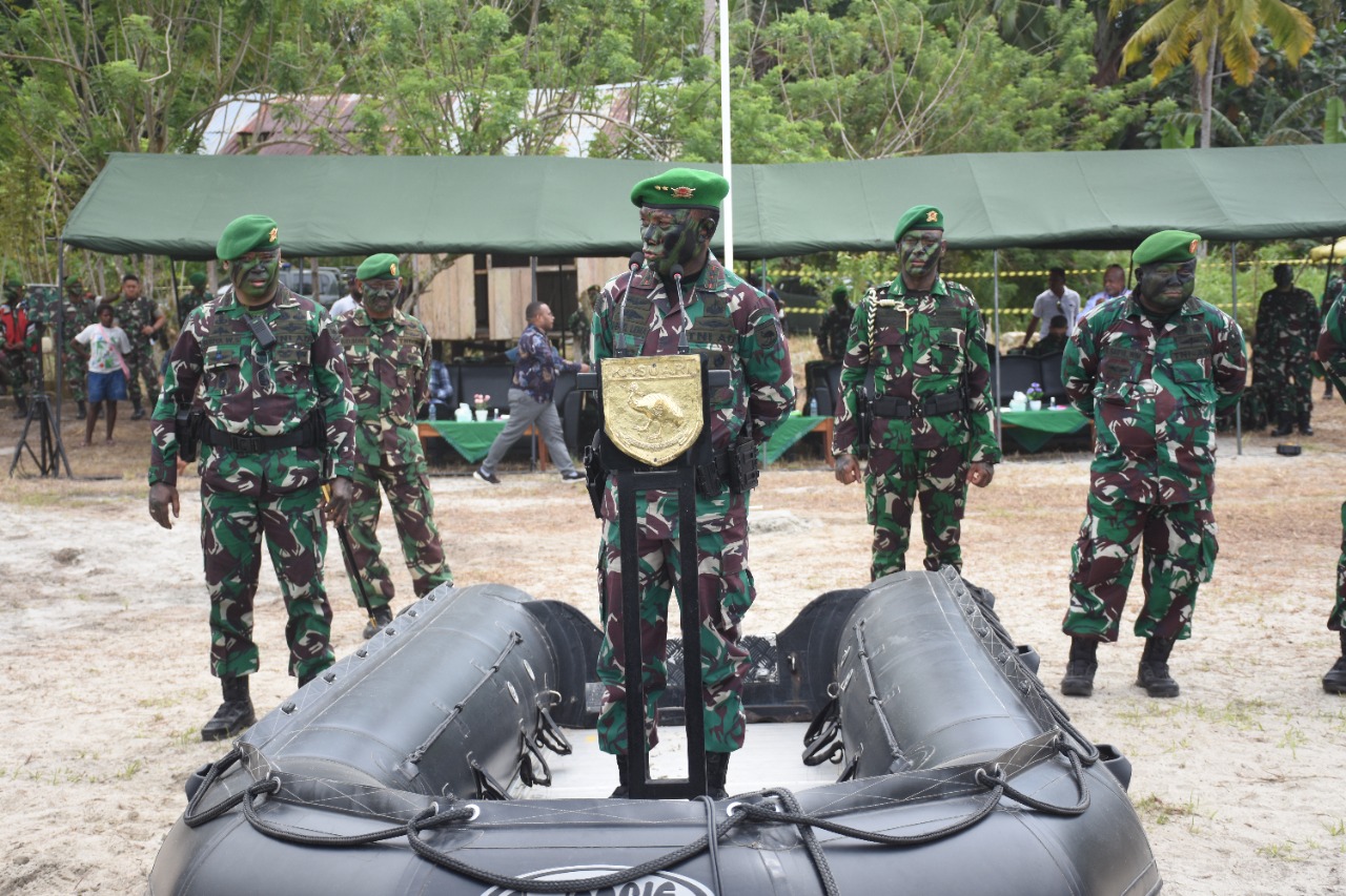 MediaSuaraMabes, Ransiki – Tradisi pembaretan dan penyematan brevet kualifikasi ”Yudha Wastu Pramuka” merupakan suatu pengakuan dan penghargaan serta lambang kehormatan bagi prajurit Infanteri sebagai Queen Of Battle.