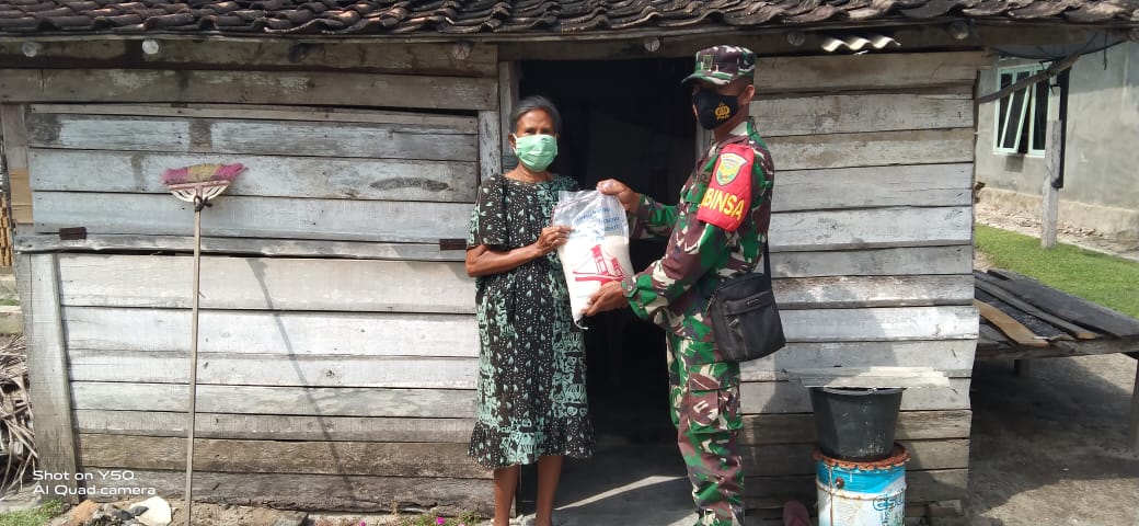 Pangdam ll Sriwijaya Distribusi Bantuan Beras Tepat Sasaran Melalui Babinsa Koramil 422- 03 Pesisir Tengah