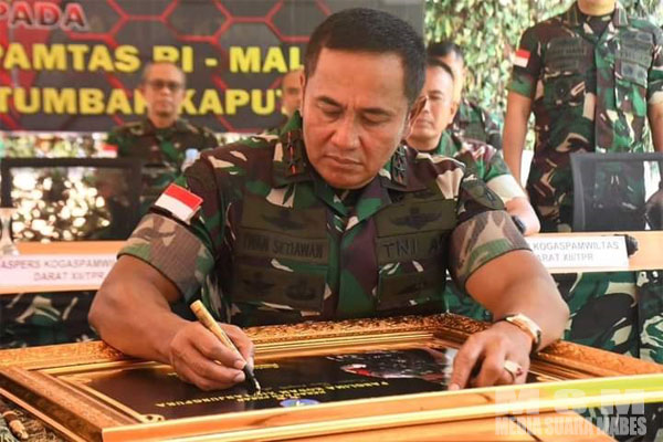 MediaSuaraMabes, Sanggau – Panglima Kodam XII/Tanjungpura Mayjen TNI Iwan Setiawan, S.E., M.M., mengunjungi Satgas Pamtas RI-Malaysia Batalyon Armed 16/Tumbak Kaputing di Pos Kotis Entikong, Kecamatan Entikong, Kabupaten Sanggau.