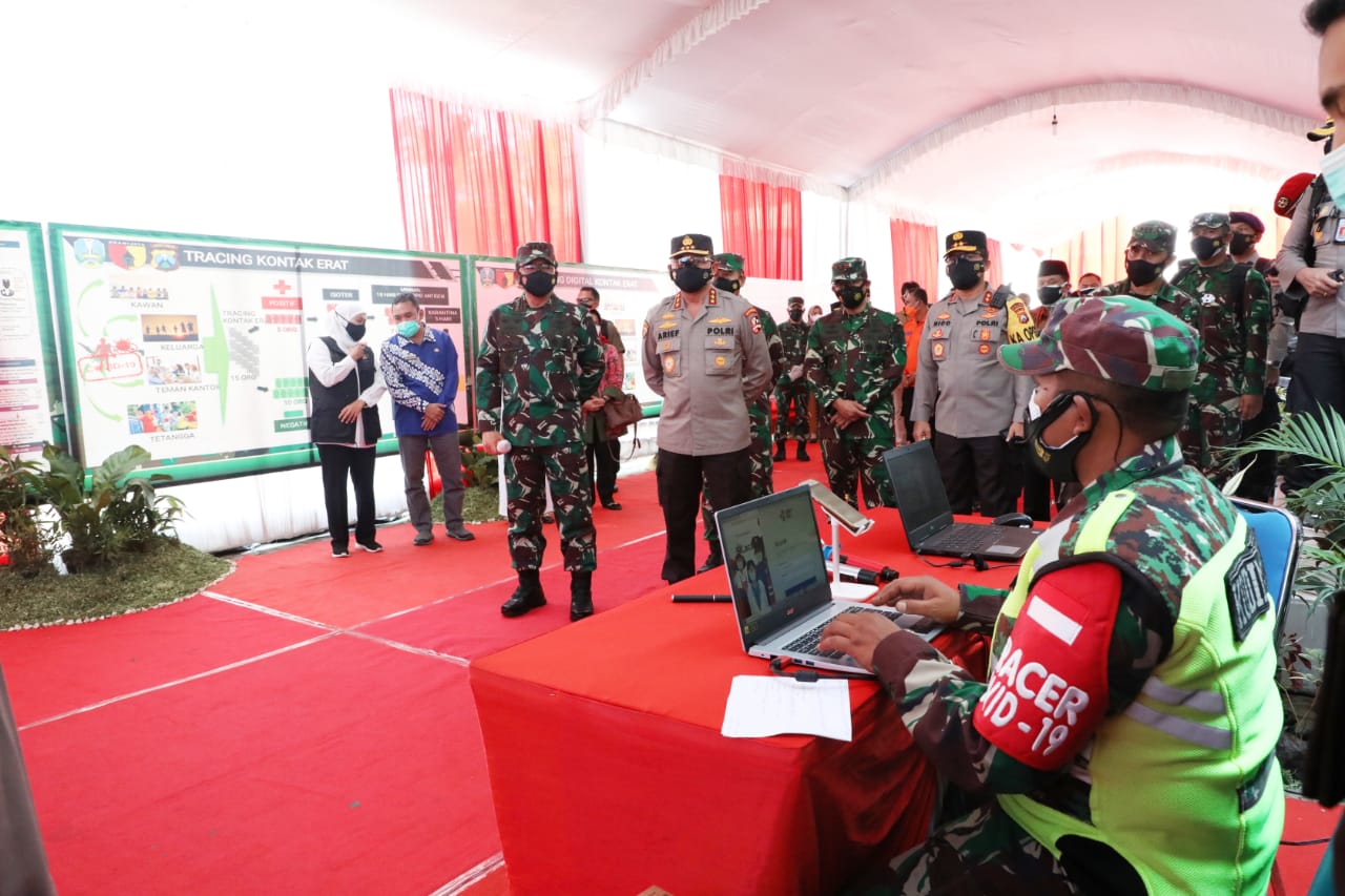 Kunjungan kerja Panglima TNI ke wilayah Jawa Timur bertujuan untuk mengecek secara langsung tenaga Tracer Covid-19 yang terdiri dari para Babinsa, Babinpotmar, Babinpotdirga dan Bhabinkamtibmas serta relawan dari masyarakat yang bertugas di setiap Puskesmas.