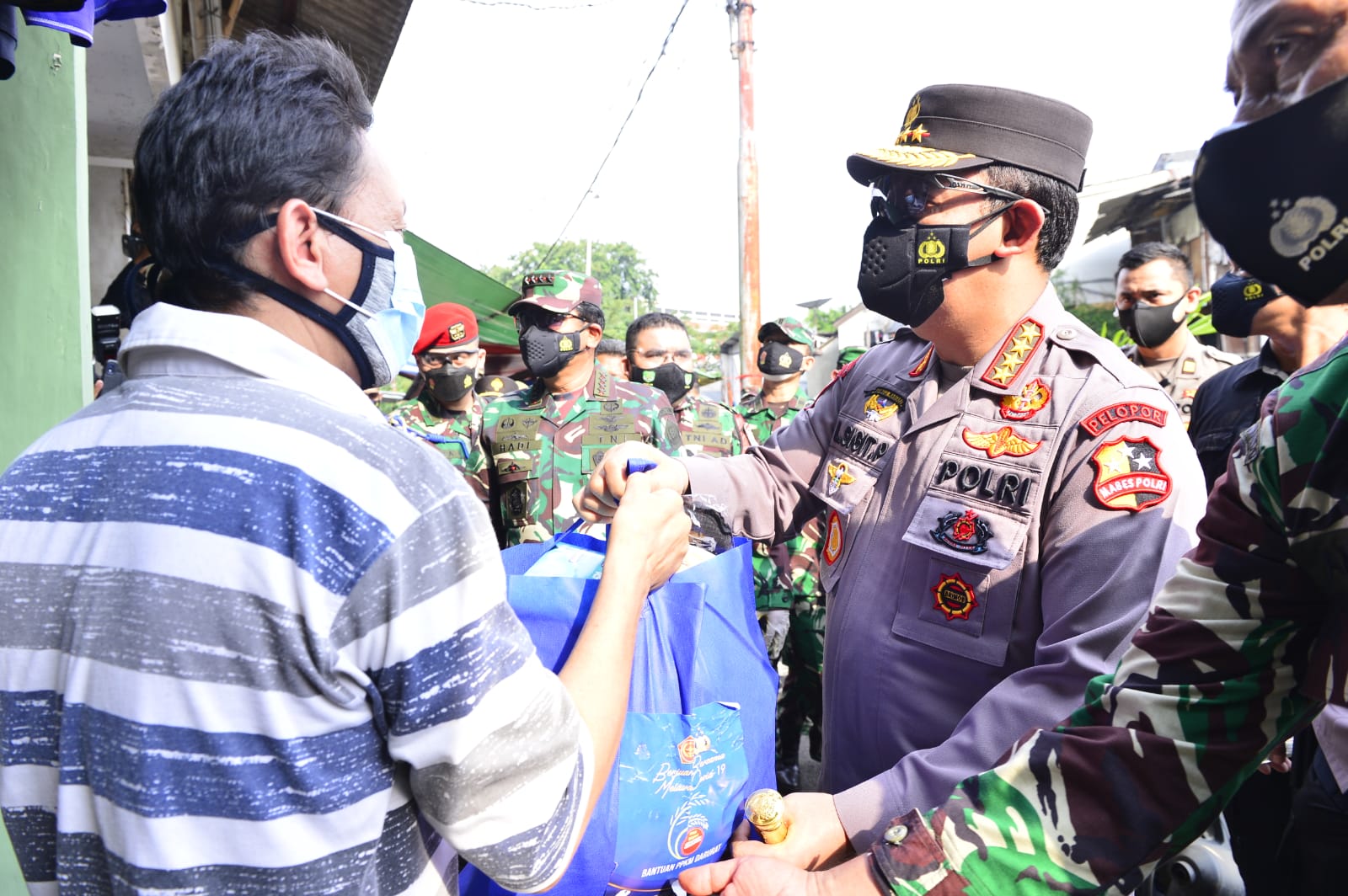 Sigit menjelaskan, bantuan sosial tersebut berasal dari Pemerintah Indonesia yang disalurkan melalui TNI-Polri. Hal ini merupakan wujud kehadiran Negara di tengah masyarakat. Sekaligus, bentuk tanggung jawab Pemerintah kepada masyarakat yang terdampak Pandemi Covid-19.