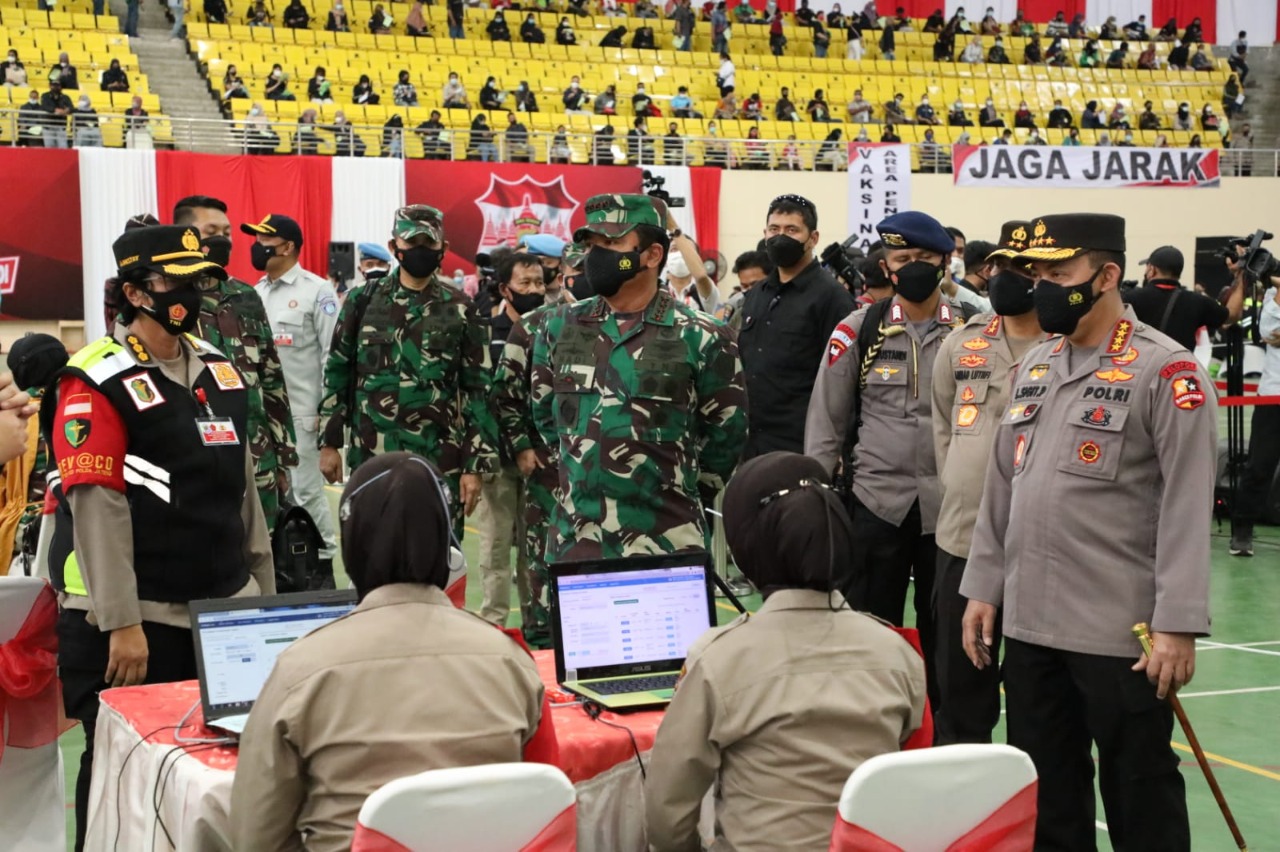Hal tersebut disampaikan Panglima TNI Marsekal TNI Hadi Tjahjanto, S.I.P., didampingi Kapolri Jenderal Pol Drs. Listyo Sigit Prabowo, M.Si., saat meninjau Serbuan Vaksinasi di GOR Jatidiri Semarang, Kamis (5/8/2021).