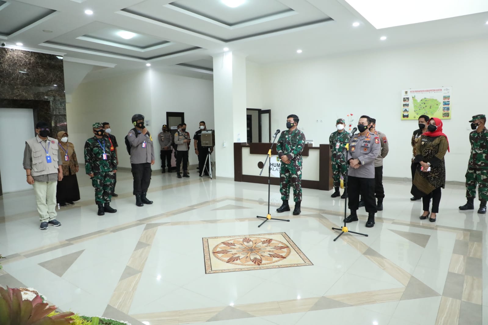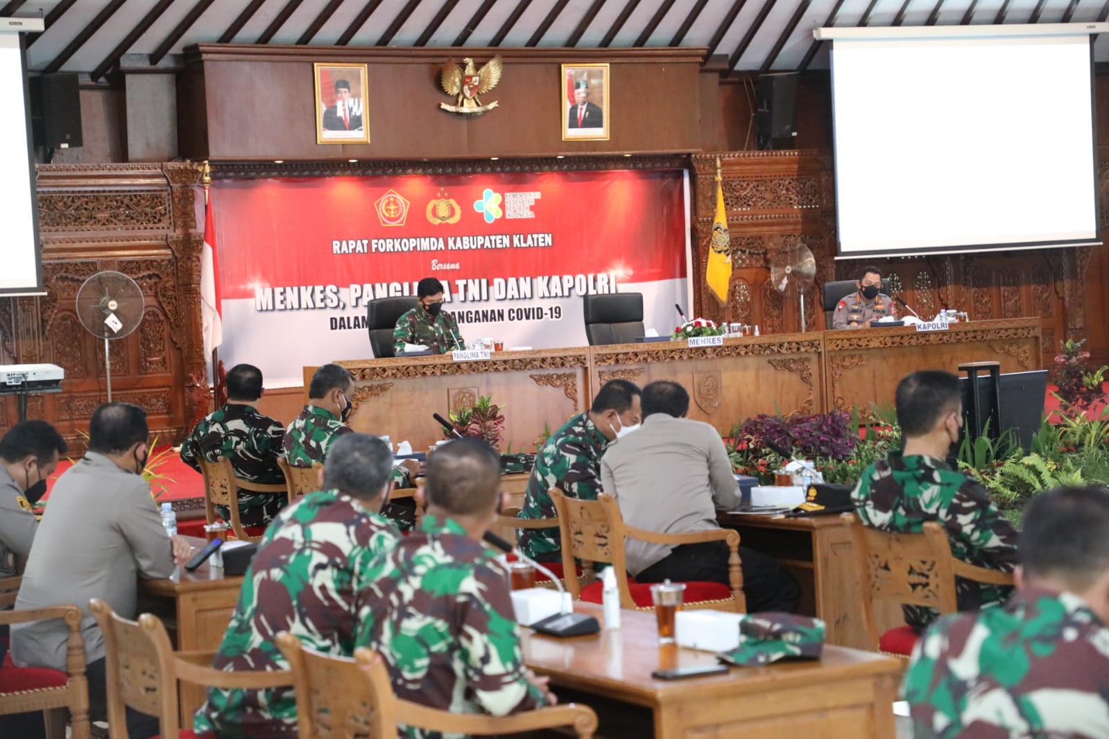 Hal tersebut disampaikan Panglima TNI Marsekal TNI Hadi Tjahjanto, S.I.P saat memimpin rapat terkait penanganan Covid-19 yang didampingi Menteri Kesehatan Ir. Budi Gunadi Sadikin, CHFC, CLU., Kapolri Jenderal Pol Drs. Listyo Sigit Prabowo, M.Si., dan Forkompimda Kabupaten Klaten, bertempat di Aula kantor Bupati Klaten, Sabtu (21/8/2021).