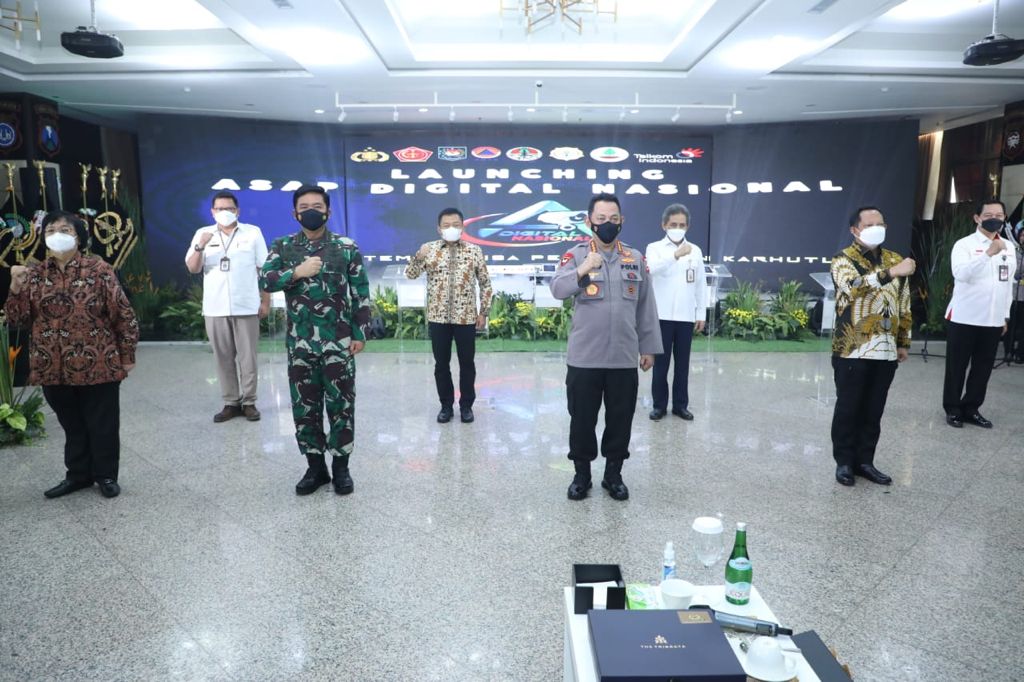 Turut hadir dalam kegiatan tersebut, Mendagri Prof. Drs. H. Muhammad Tito Karnavian, M.A., Ph.D., Menteri LHK Siti Nurbaya Bakar, Direktur Telkom Indonesia, Kepala BRGM serta segenap Pejabat Utama Mabes Polri. (wp-02)