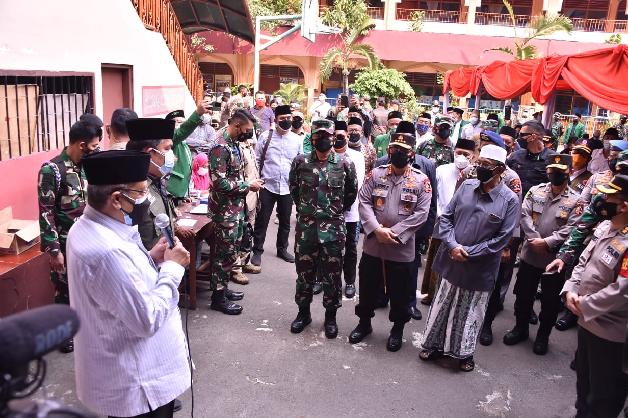Hal tersebut disampaikan Panglima TNI Marsekal TNI Hadi Tjahjanto, S.I.P. saat meninjau pelaksanaan vaksinasi di Yayasan Pendidikan Islam Al-Mahbubiyah bersama Kapolri Jenderal Polisi Drs. Listyo Sigit Prabowo, M.Si. di Jalan Jeruk Purut Cilandak Timur, Jakarta Selatan, Rabu (7/7/2021).