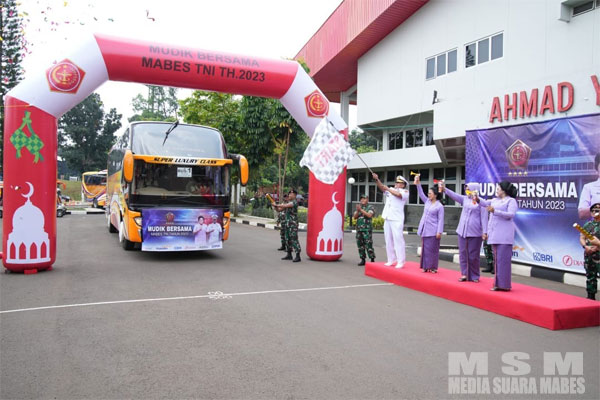 Mudik bersama Mabes TNI tahun 2023 diikuti oleh 791orang peserta dan menggunakan 17 unit bus dengan tujuan Mabes TNI-Surabaya dan Mabes TNI-Jogyakarta melalui jalur Utara dan Selatan. Mudik bersama Mabes TNI 2023 ini terselenggara atas kerjasama Mabes TNI dengan Bank BNI, BRI, Mandiri, Arta Graha, PT Jarum dan IPCD. (Puspen TNI)