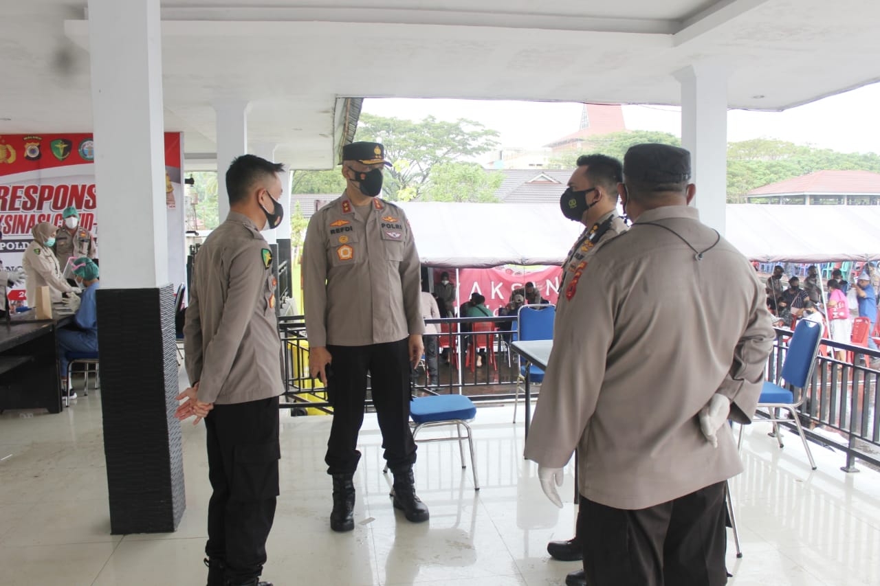 SuaraMabes,POLDAMALUKU – Kepala Kepolisian Daerah Maluku Irjen Pol Drs Refdi Andri, M.Si kembali memantau pelaksanaan vaksinasi gratis di Gerai Vaksinasi Presisi Polda Maluku, Lapangan Letkol CHR Tahapary, Tantui, Kota Ambon, Rabu (14/7/2021).